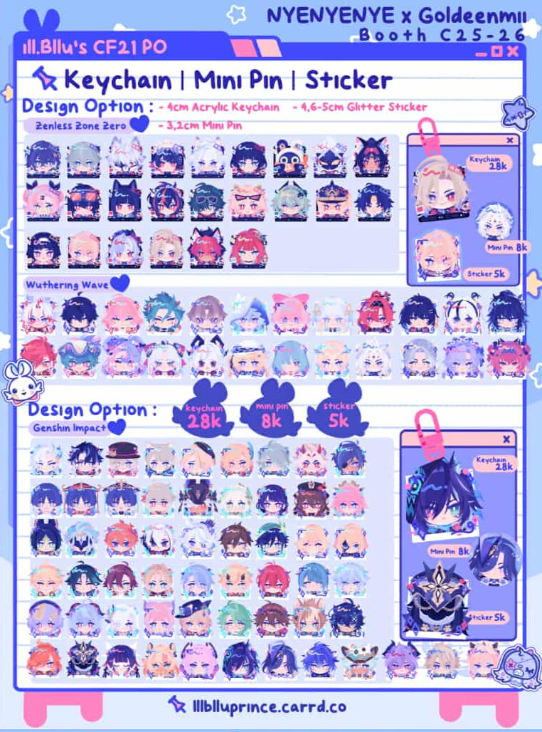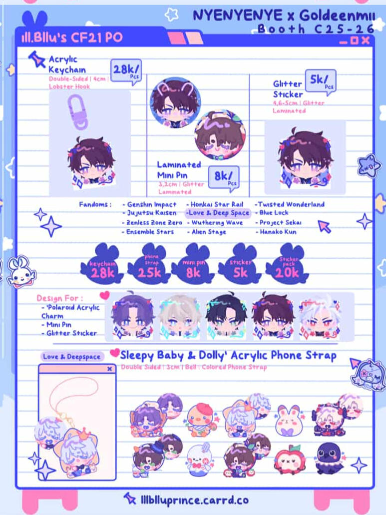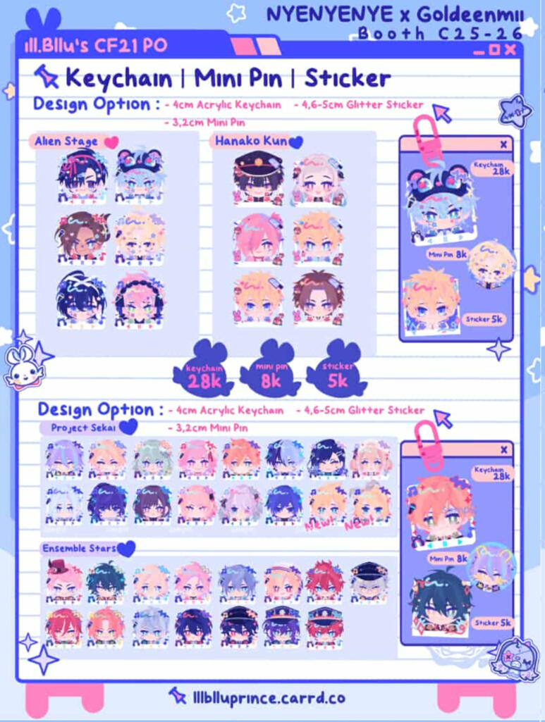 Hoyoverse, Jujutsu Kaisen, Arknight, Hazbin Hotel, Identity V, Bungou Stray Dogs, Alien stage, LADS, WuWa, Enstar, Twisted Wonderland, Hanako, Nucani, HQ, Proseka, Kimetsu no Yaiba, Plave, CRK, Apothecary Diaries, Dungeon Meshi, Chainsaw Man, Detective Conan, PLAVE, Stardew Valley.