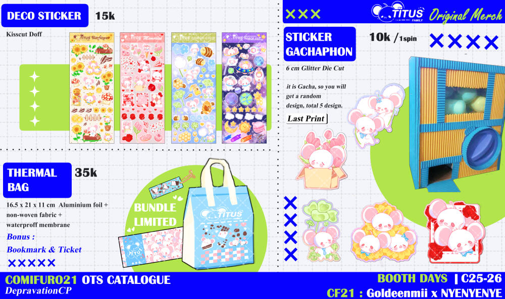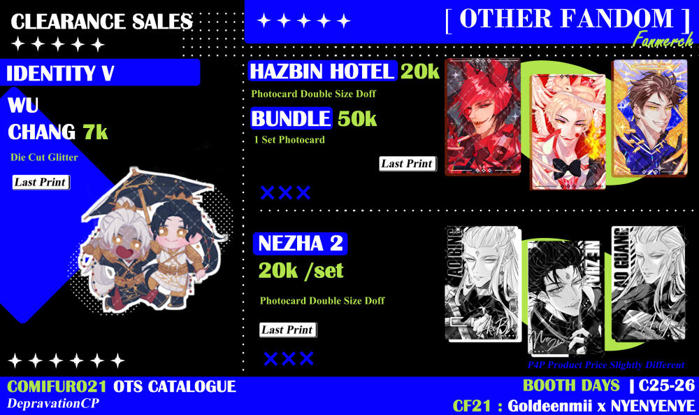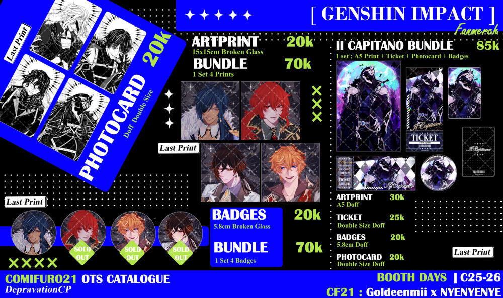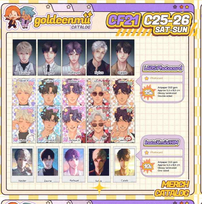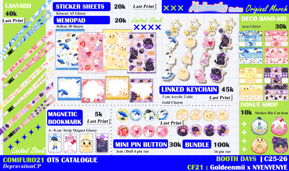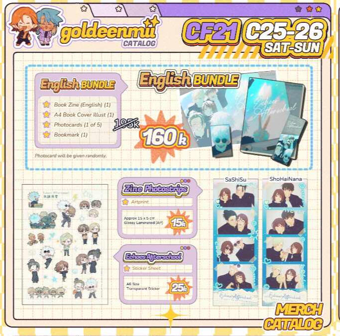 This is catalogue our circle.• Circle : Goldeenmii x NYENYENYE• Booth : C25-26• Days : Booth Days• Fandom :